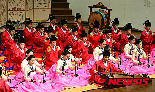【서울=뉴시스】김동민 기자 = 이화국악앙상블(기악)이 11일 오후 서울 서대문구 이화여대 대강당에서 열린 이화여자대학교 음악대학 창립 90주년 기념 대음악회에서 멋진 무대를 선보이고 있다.