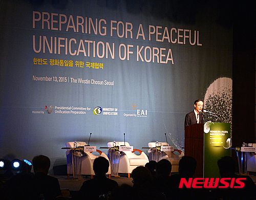 【서울=뉴시스】박주성 기자 = 한승수 전 외교부 장관이 13일 오전 서울 웨스틴 조선호텔에서 열린 한반도 평화통일을 위한 국제협력 컨퍼런스에서 기조연설을 하고 있다. 2015.11.13.