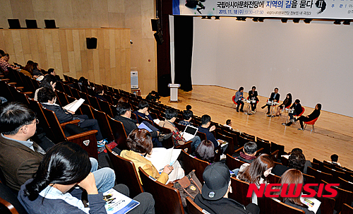 【광주=뉴시스】배동민 기자 = 18일 오후 광주 동구 국립아시아문화전당 문화정보원 극장3에서 전당이 주최하고 아시아문화원과 아시아문화중심도시조성지원포럼, 광주전남기자협회, 전남대학교가 주관한 '문화전당 브랜딩·관광마케팅 전략 세미나(국립아시아문화전당에 지역의 길을 묻다Ⅱ)'가 열리고 있다. 세미나에 참여한 각계 전문가들이 문화전당의 브랜딩 전략 등을 주제로 토론을 벌이고 있다. 2015.11.18.