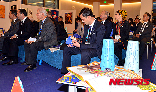 【광주=뉴시스】류형근 기자 = 25일 오후 광주 동구 국립아시아문화전당 별관에서 아시아 스토리 페스티벌이 개막한 가운데 제2회 한국·중앙아시아 장관회의에 참석한 각국 장관들이 책을 살펴보고 있다. 2015.11.25.