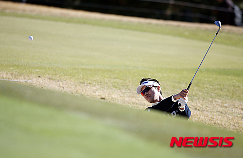 【서울=뉴시스】4일 일본 도쿄 요미우리 컨트리클럽에서 열린 제52회 니폰 시리즈 JT컵 2라운드 8번홀에서 김형성이 벙커샷을 하고 있다. 2015.12.04. (사진=KPGA 제공)