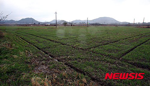 【광주=뉴시스】신대희 기자 = 2017년까지 공군 탄약고 이전이 예정된 광주 서구 서창동의 군사시설구역 내 무단 경작을 놓고 군과 일부 주민들이 갈등을 빚고 있는 가운데 지난 4일 오후 탄약고 이전 예정 부지가 보이고 있다.