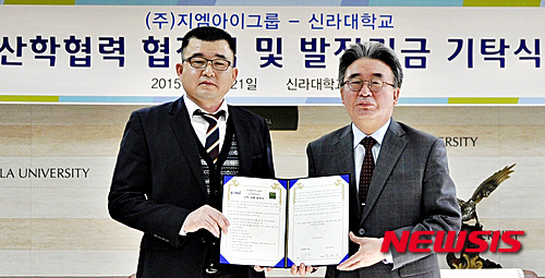 또 지엠아이그룹 이준암 대표는 신라대 교육인프라 확충과 인재 육성을 위해 1억원의 발전기금을 기탁하기로 약정했다. 2015.12.21. (사진=신라대 제공)