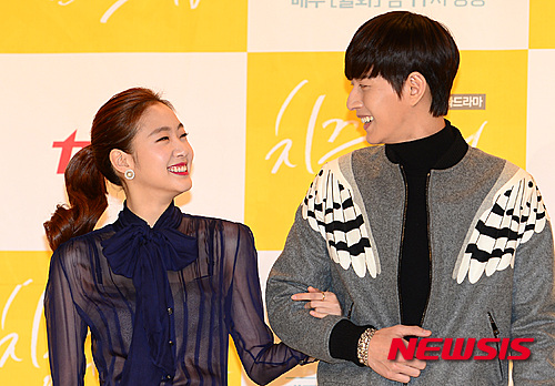 【서울=뉴시스】22일 오후 서울 영등포구 타임스퀘어 아모리스홀에서 열린 tvN '치즈인더트랩' 제작 발표회에서 김고은, 박해진이 서로를 바라보고 있다. 2015.12.22.