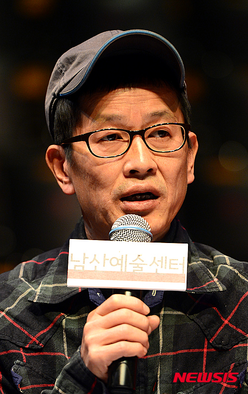 【서울=뉴시스】임태훈 기자 = '극단 골목길' 박근형 연출가가 19일 오후 서울 중구 남산예술센터에서 열린 남산예술센터 2016 시즌 프로그램 기자 간담회에서 새롭게 선보이는 작품 소개를 하고 있다.