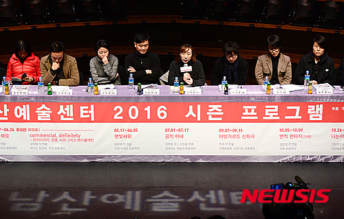 서울문화재단 남산예술센터는 간담회를 통해 오는 3월부터 11월까지 드라마센터 무대에 오르는 창작극 10편과 신규프로그램 2개를 공개했으며, 이번 시즌프로그램은 중극장 규모로 확대 가능한 소극장 작품 또는 젊은 창작자들과 협업 제작하는 시스템인 '주제기획전'을 마련한 것이 특징이다. 2016.01.19.