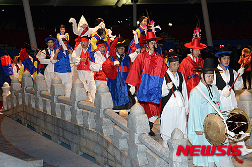 【서울=뉴시스】이영환 기자 = 정월대보름을 하루 앞둔 21일 오후 서울 송파구 서울놀이마당에서 열린 송파다리밟기 정기공연 및 정월대보름 잔치에서 송파민속보존회원들이 송파다리밟기(서울시 무형문화재3호) 공연을 선보이고 있다.
