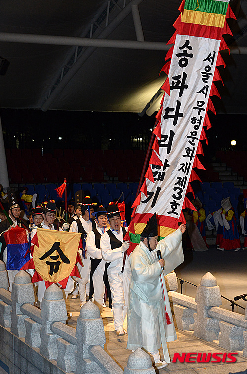 【서울=뉴시스】이영환 기자 = 정월대보름을 하루 앞둔 21일 오후 서울 송파구 서울놀이마당에서 열린 송파다리밟기 정기공연 및 정월대보름 잔치에서 송파민속보존회원들이 송파다리밟기(서울시 무형문화재3호) 공연을 선보이고 있다.