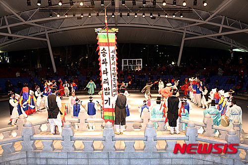 【서울=뉴시스】이영환 기자 = 정월대보름을 하루 앞둔 21일 오후 서울 송파구 서울놀이마당에서 열린 송파다리밟기 정기공연 및 정월대보름 잔치에서 송파민속보존회원들이 송파다리밟기(서울시 무형문화재3호) 공연을 선보이고 있다.