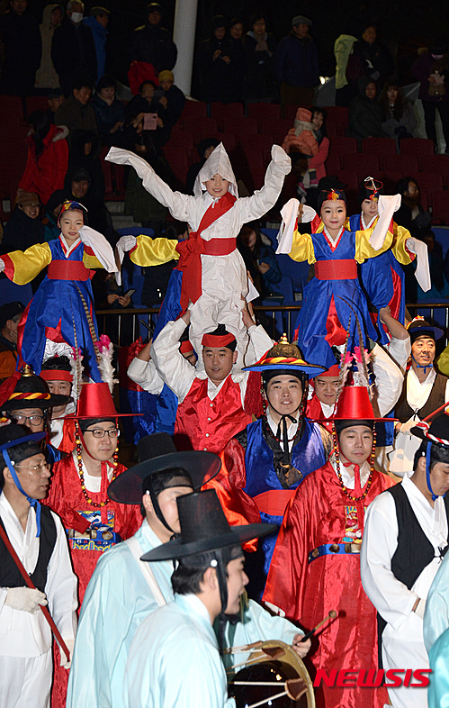 【서울=뉴시스】이영환 기자 = 정월대보름을 하루 앞둔 21일 오후 서울 송파구 서울놀이마당에서 열린 송파다리밟기 정기공연 및 정월대보름 잔치에서 송파민속보존회원들이 송파다리밟기(서울시 무형문화재3호) 공연을 선보이고 있다.