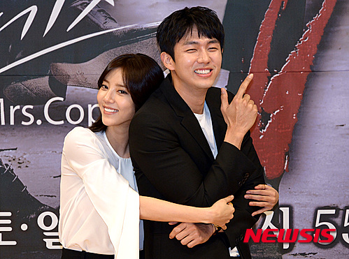 【서울=뉴시스】이영환 기자 = 4일 오후 서울 양천구 목동 SBS에서 열린 주말드라마 미세스 캅2(연출 유인식·김정현, 극본 황주하) 제작발표회에서 가수 손담비와 임슬옹이 포즈를 취하고 있다. 2016.03.04.
