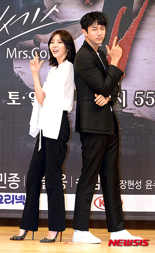 【서울=뉴시스】이영환 기자 = 4일 오후 서울 양천구 목동 SBS에서 열린 주말드라마 미세스 캅2(연출 유인식·김정현, 극본 황주하) 제작발표회에서 가수 손담비와 임슬옹이 포즈를 취하고 있다. 2016.03.04.