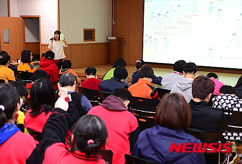【서울=뉴시스】권현구 기자 = 18일 오후 서울 노원구 서울시립북부장애인종합복지관에서 열린 발달장애 유권자 대상 투표 모의 체험 행사에서 서울시선관위 관계자가 기표방법을 교육하고 있다. 2016.03.18.
