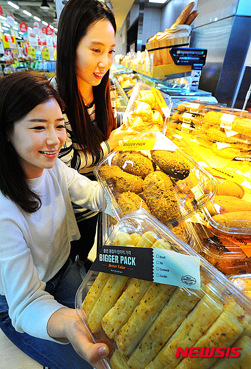 【서울=뉴시스】4일 서울 홈플러스 영등포점에서 모델들이 몽 블랑제 비거 팩을 선보이고 있다.