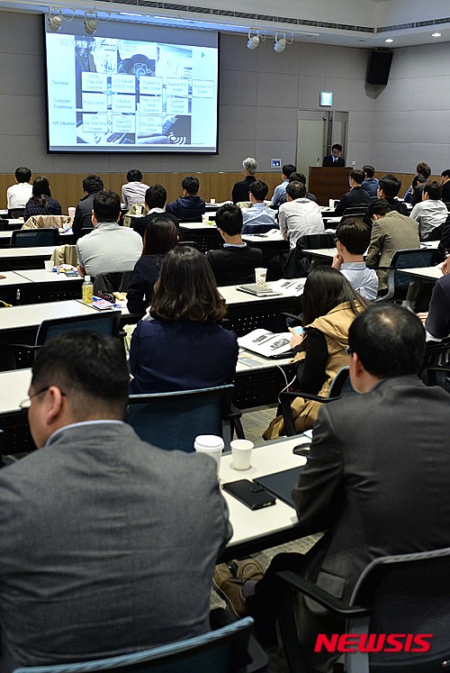 【서울=뉴시스】고승민 기자 = 7일 오전 서울 여의도 전경련회관에서 한국미래기술교육연구원 주최로 열린 실감형 가상현실(VR) 기반 컨텐츠 개발을 위한 구현기술 및 적용방안 세미나에서 조성준 다쏘시스템 상무가 VR을 위한 3D 기술동향과 솔루션 적용 사례를 주제로 강연을 하고 있다.