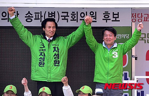 【서울=뉴시스】전신 기자 = 국민의당 안철수 상임공동대표가 7일 서울 송파구 마천시장에서 4.13 총선 송파구병 차성환 후보 지원 유세를 하고 있다. 2016.04.07.