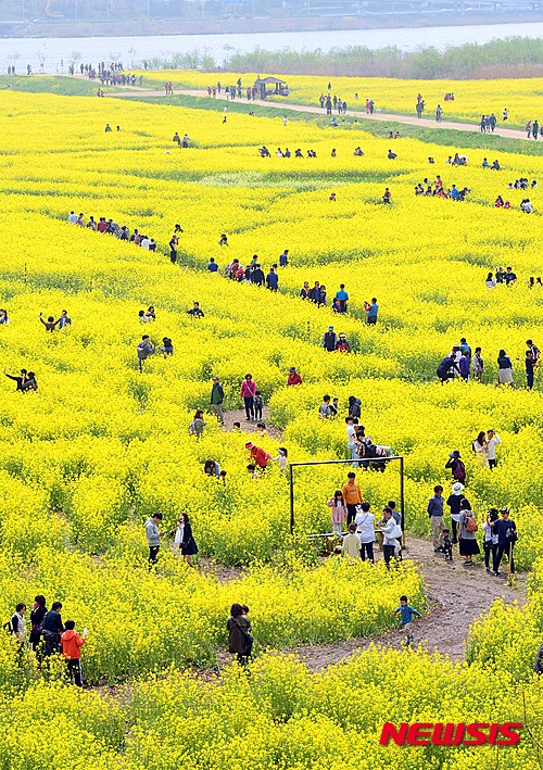 【부산=뉴시스】 하경민 기자 = 10일 오전 부산 강서구 낙동강 대저생태공원에서 열린 '제5회 낙동강 유채꽃 축제'를 찾은 시민과 관광객들이 꽃놀이를 즐기고 있다.