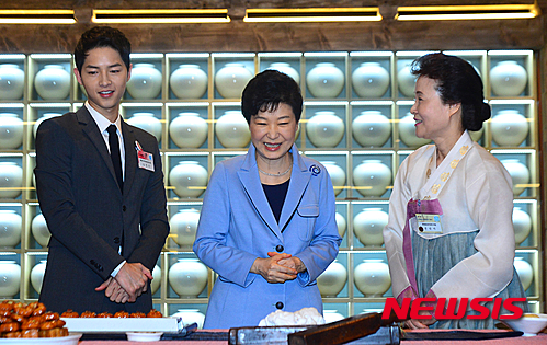 약식 만들기 체험하는 박근혜 대통령과 송중기