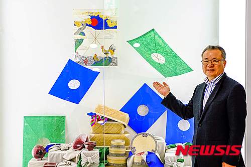 【서울=뉴시스】K-Style Hub 한식문화관 개관식이 지난 11일 서울 중구 청계천로 한국관광공사 서울센터에서 열린 가운데 리기태 방패연 명장이 3층 '희망의 방'에서 전통문화 콘텐츠인 민속연인 전통연 작품 희망의 새, 오디세이, 초봄에 대하여 설명하고 있다.