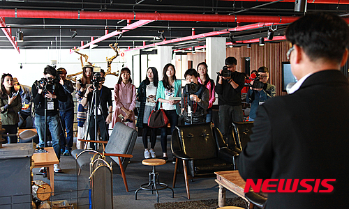 【정선=뉴시스】홍춘봉 기자 = 중국 광둥, 쓰촨, 푸젠, 저장, 윈난 등 5개 성의 5개 TV방송국 PD와 촬영기사, 리포터 등이 15일 태양의 후예 촬영지인 강원 정선군 삼탄아트마인에서 '한류현장'을 촬영하고 있다. 2016.04.15.