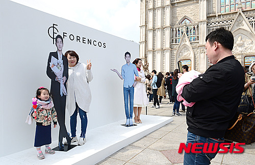 【서울=뉴시스】임태훈 기자 = 17일 오후 서울 동대문구 경희대학교 서울캠퍼스 평화의 전당에서 열린 송중기 팬미팅 '5th Fan meeting in Seoul 우리, 다시 만난 날'에 참석하러 온 팬들이 포토존에서 기념촬영을 하고 있다.