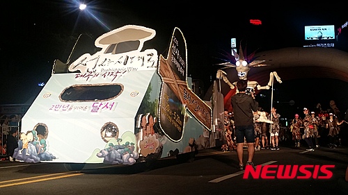 【대구=뉴시스】정창오 기자 = 7일 오후 대구 중구 국채보상로 인근에서 열린 2016 컬러풀페스티벌 예선전에서 달서구팀이 '달서 선사시대로' 축제를 알리며 거리 퍼레이드를 벌이고 있다. 2016.05.07.