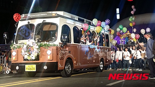 【대구=뉴시스】정창오 기자 = 7일 오후 대구 중구 국채보상로 인근에서 열린 2016 컬러풀페스티벌 예선전에서 대구 중구팀이 명예 구민인 김광석과 기타를 주제로 퍼레이드를 펼치고 있다. 2016.05.07.