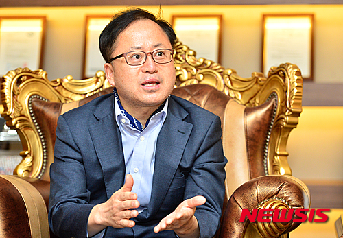 【서울=뉴시스】배훈식 기자 = 강국진 (주)엘앤케이바이오메드 대표가 4일 오후 서울 양천구 CBS 사옥 내 회사 사무실에서 뉴시스와 인터뷰하고 있다. 2016.05.09.