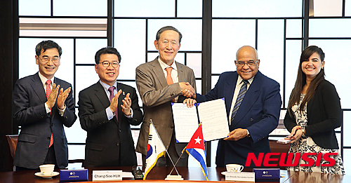 【서울=뉴시스】허창수 전경련 회장이 12일 서울 여의도 전경련회관에서 올란도 에르난데스 기옌 쿠바상공회의소 회장을 초청해 경제계와의 간담회를 갖고 쿠바상의와 경제협력위원회 출범 MOU를 체결했다.