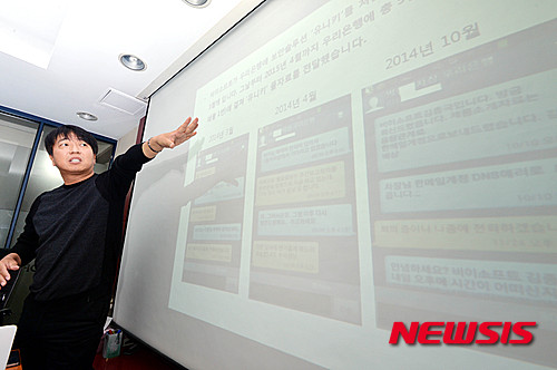 증거 문자 공개하는 비이소프트 표 대표