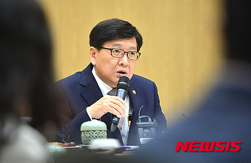 【서울=뉴시스】김선웅 기자 = 18일 오전 서울 강남구 강남구립행복요양병원을 찾은 정진엽 보건복지부 장관이 병원관계자들과의 간담회에서 인사말을 하고 있다. 2016.05.18.
