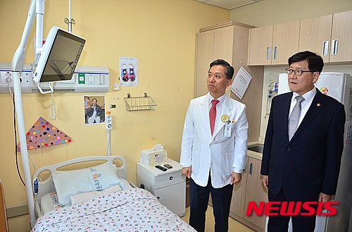 【서울=뉴시스】김선웅 기자 = 18일 오전 서울 강남구 강남구립행복요양병원을 찾은 정진엽(오른쪽) 보건복지부 장관이 병실을 둘러보고 있다. 2016.05.18.