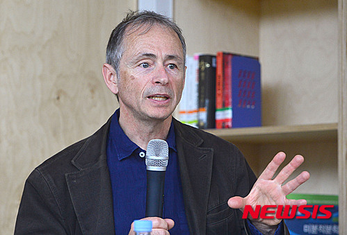 【서울=뉴시스】김선웅 기자 = 19일 오후 서울 용산구 숙명여자대학교 중앙도서관에서 창학 110주년·한불수교 130주년 기념으로 엠마뉴엘 발롱 파리 10대학 정치사회학과 교수가 '예술이라는 이름으로 무엇이든 할 수 있는가?'를 주제로 특강을 하고 있다. 2016.05.19.