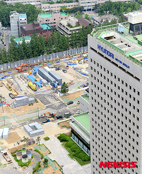 현대차·현대건설 합동 ‘현대차 글로벌비즈니스센터(GBC) 건립 추진단’은 우선 보호막 설치 등 사옥 철거 사전 작업을 벌인 후 7월부터 본격적인 해체를 시작하고, 내년 상반기 착공, 오는 2021년 준공을 목표로 하고 있으며, 철거 공법은 폭파 대신 지상 22층 최상층부터 순차대로 해체한고 밝혔다. 2016.05.23.