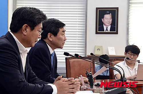 【서울=뉴시스】홍찬선 기자 = 19대 국회 임기가 종료되는 29일 오전 서울 여의도 국회에서 더불어민주당 이종걸 원내대표와 이춘석 원내수석부대표가 퇴임 기자회견을 하고 있다. 2016.05.29.