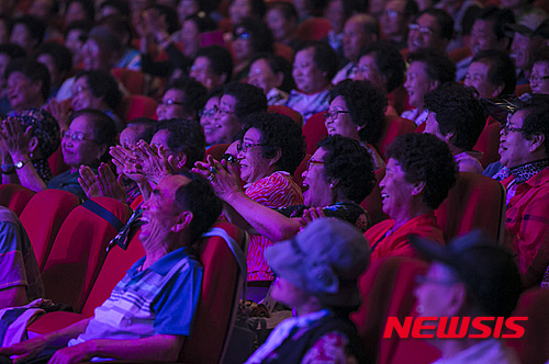 【서울=뉴시스】김진아 기자 = 지난 27일 대전 충남대학교 정심화국제문화회관에서 열린 골프존문화재단 '2016 사랑나눔 효 큰잔치'에 참석한 어르신들이 흥겨운 공연을 관람하고 있다. 2016.05.29. (사진=골프존문화재단 제공)