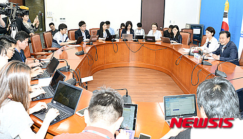 【서울=뉴시스】홍찬선 기자 = 20대 국회개원을 하루 앞둔 29일 오후 서울 여의도 국회에서 더불어민주당 변재일 정책위의장과 한정애 정책위부의장이 제20대 국회 중점추진법안 관련 기자간담회를 하고 있다. 2016.05.29.