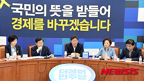 【서울=뉴시스】홍찬선 기자 = 31일 오전 서울 여의도 국회 당대표실에서 열린 더불어민주당 어버이연합 등 진상규명 TF 4차회의에서 이춘석 위원장이 모두발언을 하고 있다. 2016.05.31.