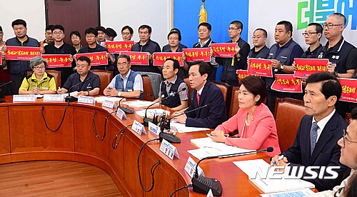 더민주 원내대표 회의실서 성과연봉제 규탄하는 금융노조