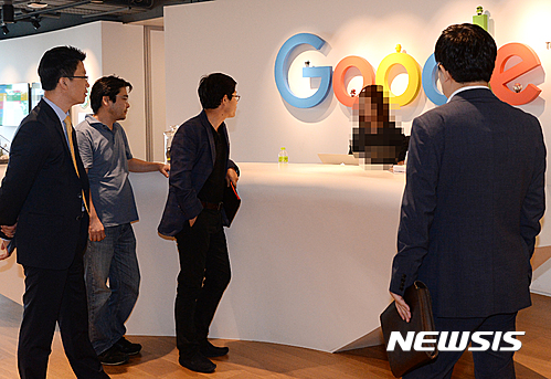 【서울=뉴시스】장세영 기자 = 카카오의 첫 퍼블리싱 게임 '원(O.N.E) for Kakao'가 출시 직후 한 때 구글 마켓에서 제대로 검색되지 않아 논란이 되고 있다. 이에 따라 게임 '원(O.N.E) for Kakao'의 개발자와 투자자들이 8일 오전 서울 강남구 역삼동 구글코리아 본사를 찾아 항의하고 있다. 2016.06.08.