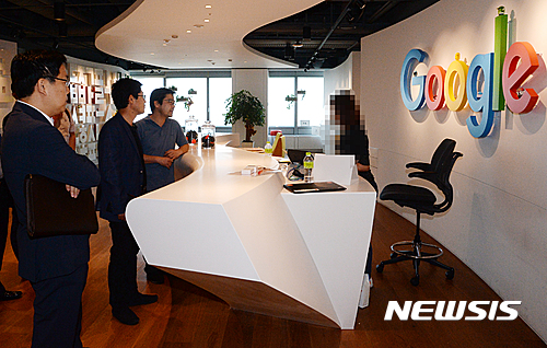 【서울=뉴시스】장세영 기자 = 카카오의 첫 퍼블리싱 게임 '원(O.N.E) for Kakao'가 출시 직후 한 때 구글 마켓에서 제대로 검색되지 않아 논란이 되고 있다. 이에 따라 게임 '원(O.N.E) for Kakao'의 개발자와 투자자들이 8일 오전 서울 강남구 역삼동 구글코리아 본사를 찾아 항의하고 있다. 2016.06.08.