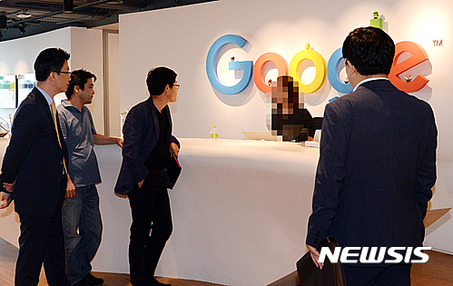 【서울=뉴시스】장세영 기자 = 카카오의 첫 퍼블리싱 게임 '원(O.N.E) for Kakao'가 출시 직후 한 때 구글 마켓에서 제대로 검색되지 않아 논란이 되고 있다. 이에 따라 게임 '원(O.N.E) for Kakao'의 개발자와 투자자들이 8일 오전 서울 강남구 역삼동 구글코리아 본사를 찾아 항의하고 있다. 2016.06.08.