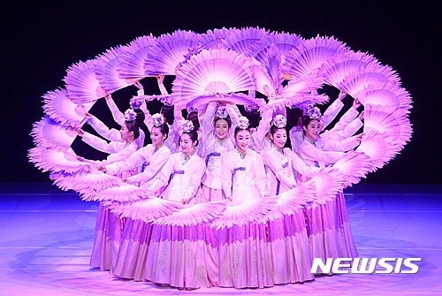 【서울=뉴시스】방지원 인턴기자 = 17일 오후 서울 서초구 국립국악원 예악당에서 열린 국립국악원 무용단의 '무원' 공연 드레스 리허설에서 2막 무맥 중 부채춤이 진행되고 있다. 2016.06.17