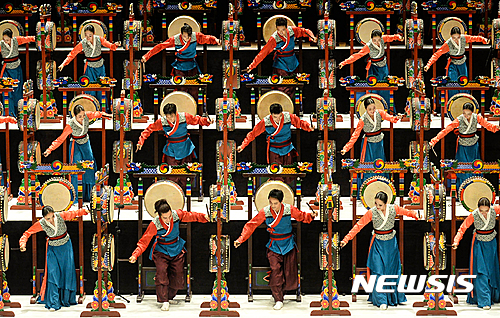 【서울=뉴시스】방지원 인턴기자 = 17일 오후 서울 서초구 국립국악원 예악당에서 열린 국립 국악원 무용단의 '무원' 공연 드레스 리허설에서 2막 마지막 오고무 춤이 진행되고 있다. 2016.06.17