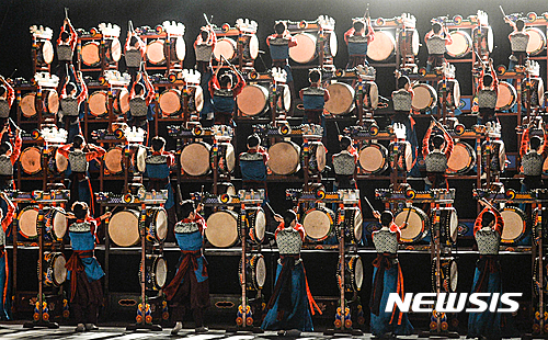 【서울=뉴시스】방지원 인턴기자 = 17일 오후 서울 서초구 국립국악원 예악당에서 열린 국립 국악원 무용단의 '무원' 공연 드레스 리허설에서 2막 마지막 오고무 춤이 진행되고 있다. 2016.06.17