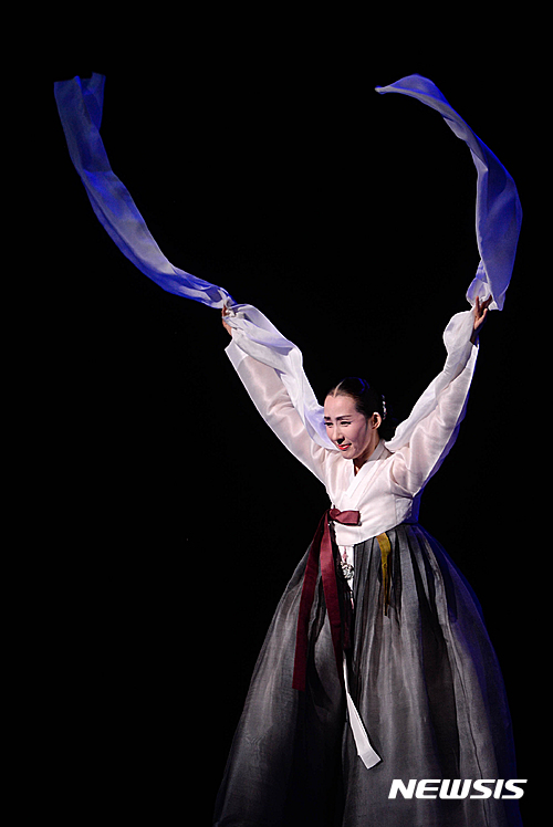 【서울=뉴시스】방지원 인턴기자 = 17일 오후 서울 서초구 국립국악원 예악당에서 열린 국립국악원 무용단의 '무원' 공연 드레스 리허설에서 2막 무맥 중 살풀이춤이 진행되고 있다. 2016.06.17