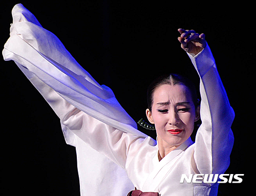 【서울=뉴시스】방지원 인턴기자 = 17일 오후 서울 서초구 국립국악원 예악당에서 열린 국립국악원 무용단의 '무원' 공연 드레스 리허설에서 2막 무맥 중 살풀이춤이 진행되고 있다. 2016.06.17
