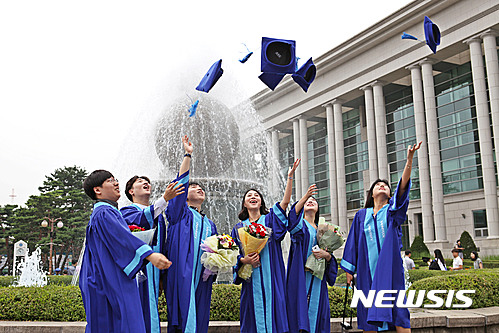 【서울=뉴시스】19일 서울 노원구 삼육대학교 대강당에서 2015학년도 후기 학위수여식이 열린 가운데 졸업생들이 학사모를 던지고 있다. 2016.08.19. (사진=삼육대학교 제공)