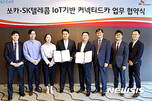 【서울=뉴시스】SK텔레콤(대표이사 사장 장동현)은 쏘카(대표 이재용)와 차량공유(Carsharing) 서비스에 IoT 전용망과 모바일 내비게이션을 활용한 커넥티드카 구현에 나설 계획이라고 22일 밝혔다.