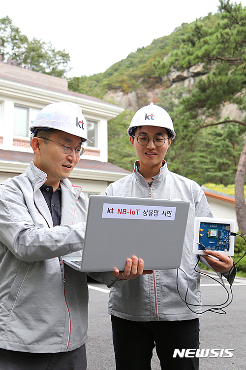 【서울=뉴시스】KT는 세계최초로 LTE 상용망 환경에서 3GPP 표준기반의 NB-IoT의 주요 기술 시연에 성공했다고 31일 밝혔다.